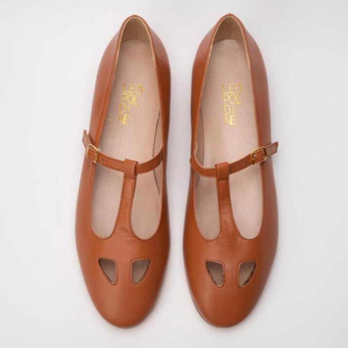 Le nostre scarpe T-bar con gli occhietti, un connubio perfetto di stile e funzionalità. Realizzate in nappa color cuoio, queste scarpe sono ideali per chi cerca un tocco di originalità.