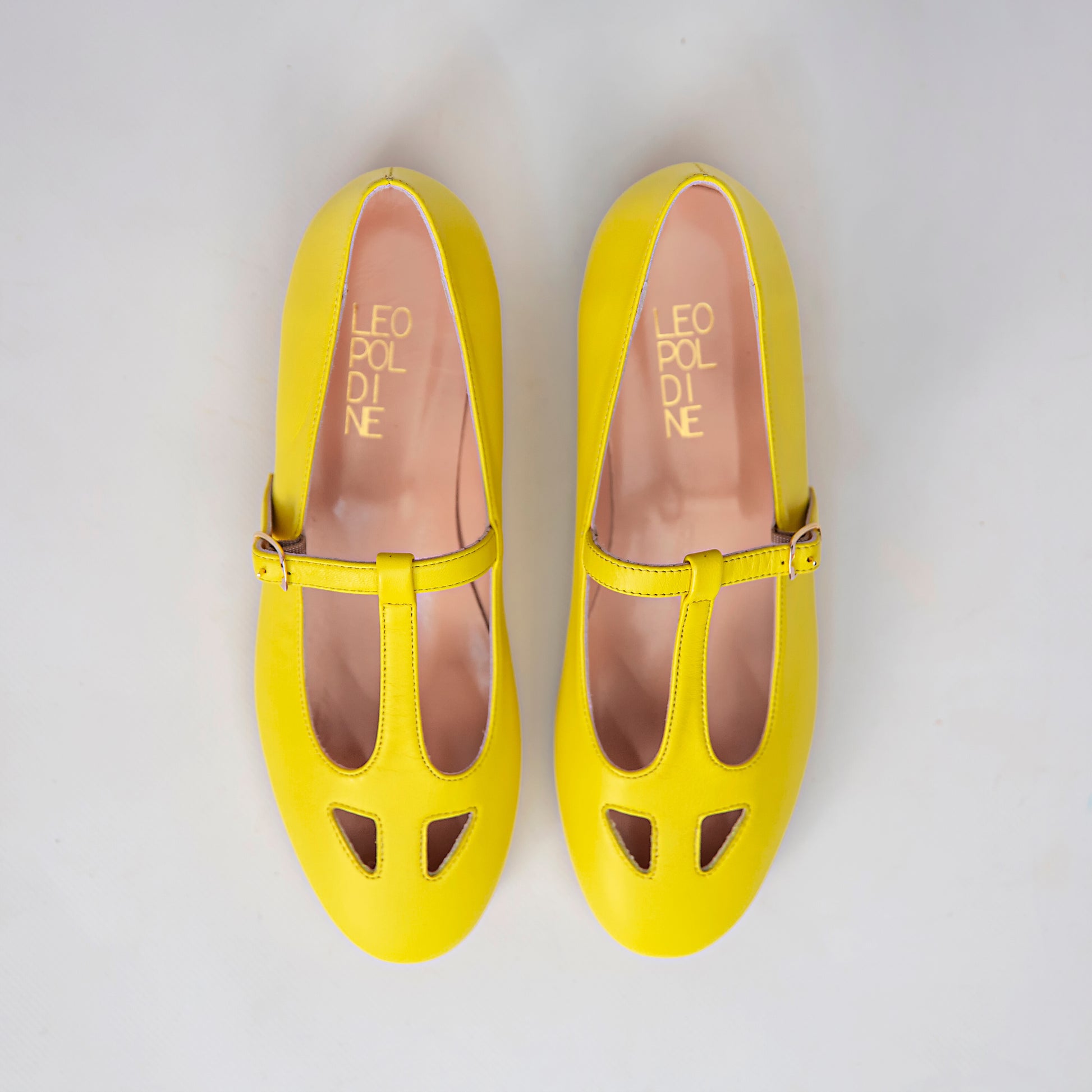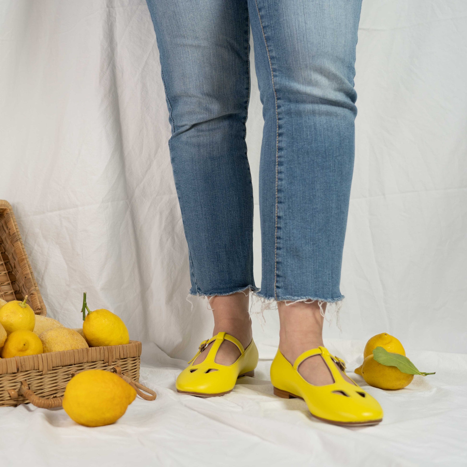 Le nostre scarpe T-bar con gli occhietti, un connubio perfetto di stile e funzionalità. Realizzate in nappa color giallo limone, queste scarpe sono ideali per chi cerca un tocco di originalità.