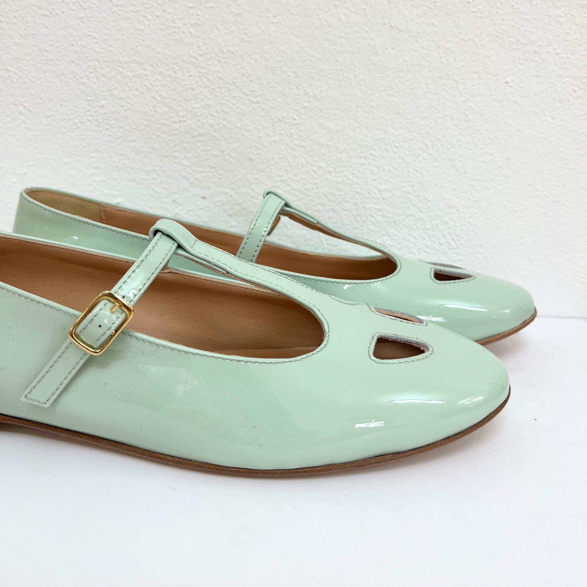 Le nostre scarpe T-bar con gli occhietti, un connubio perfetto di stile e funzionalità. Realizzate in pelle vernice, queste scarpe sono ideali per chi cerca un tocco di originalità.